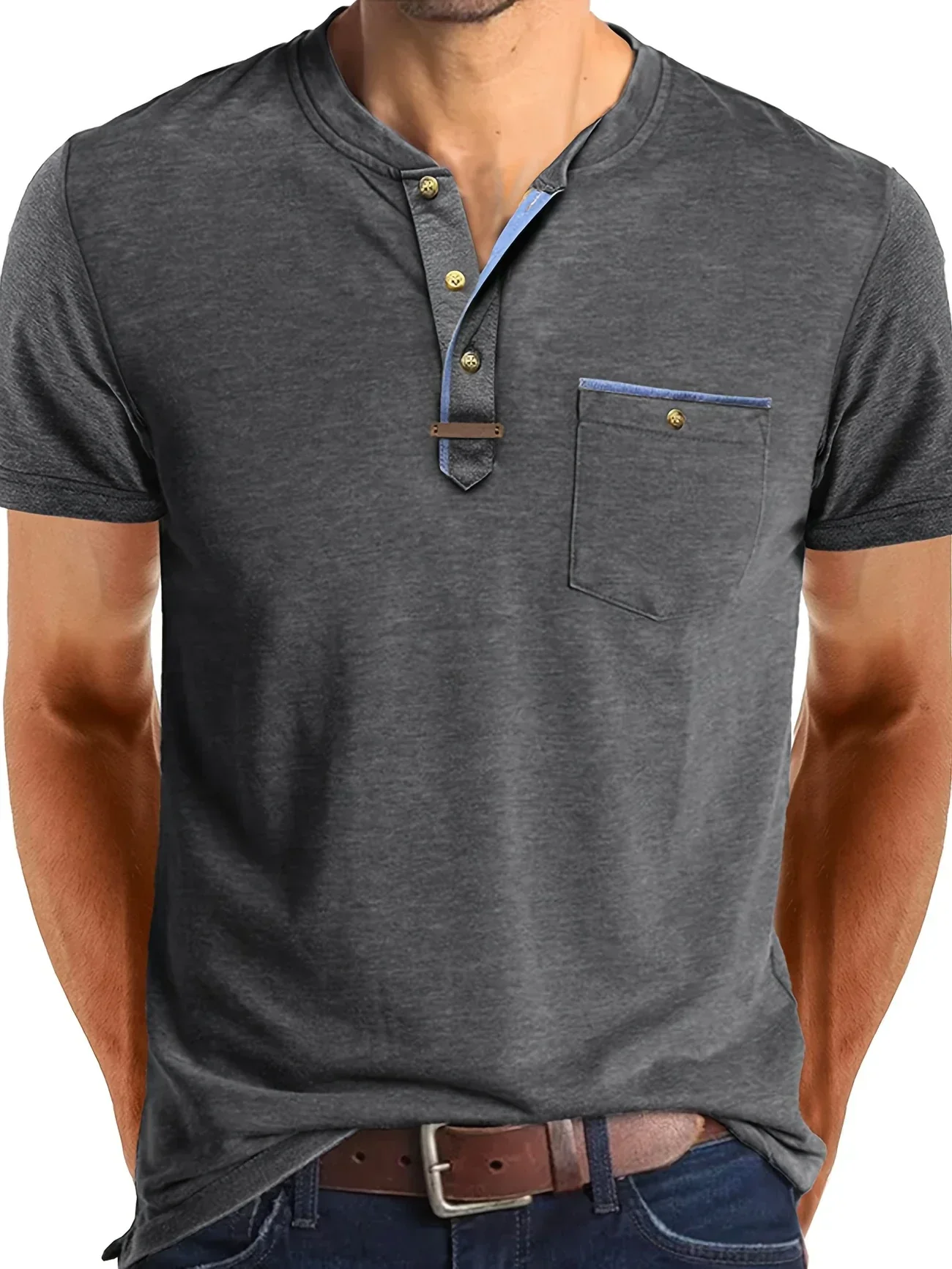 - Simple yet sophisticated: The classic round neck and functional chest pocket provide a timeless look that's perfect for any casual occasion. It’s a versatile piece that easily pairs with anything, making it a go-to choice for a sharp and put-together appearance.